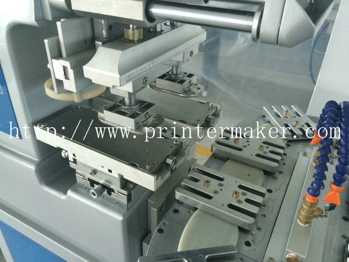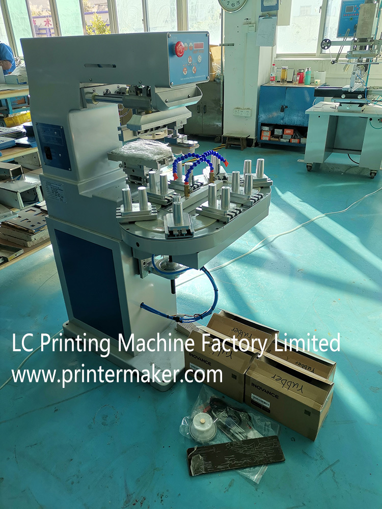 2 Colors Conveyor Belt Ink Cups Pad Printing Machine has 8 PCS printing position.