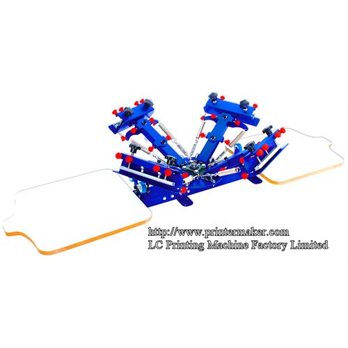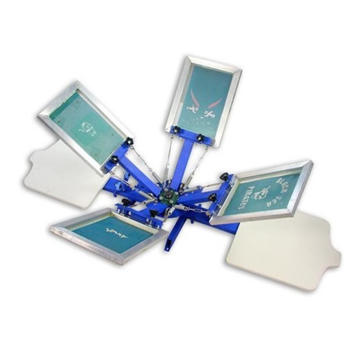 Puede instalar cuatro placas de serigrafía con rotación independiente, ideal para sobreimpresión de cuatro colores y pruebas de diseño en negocios de serigrafía.
