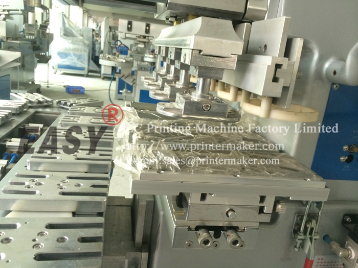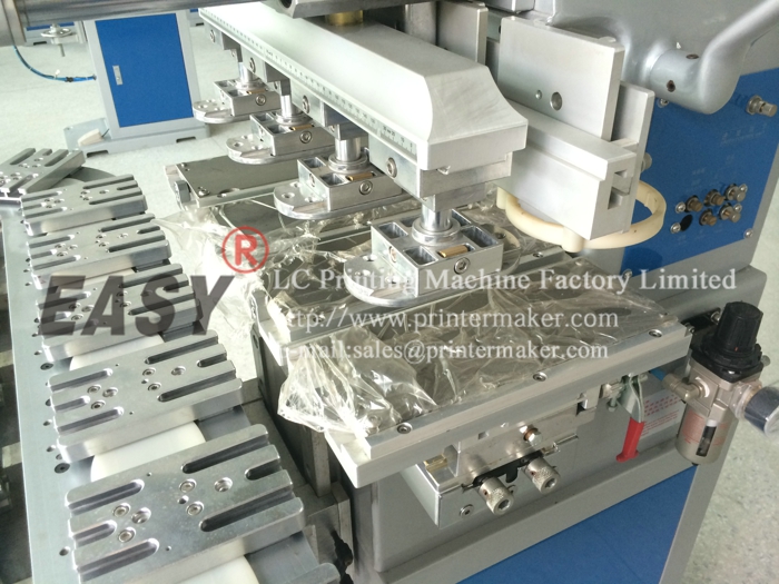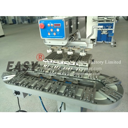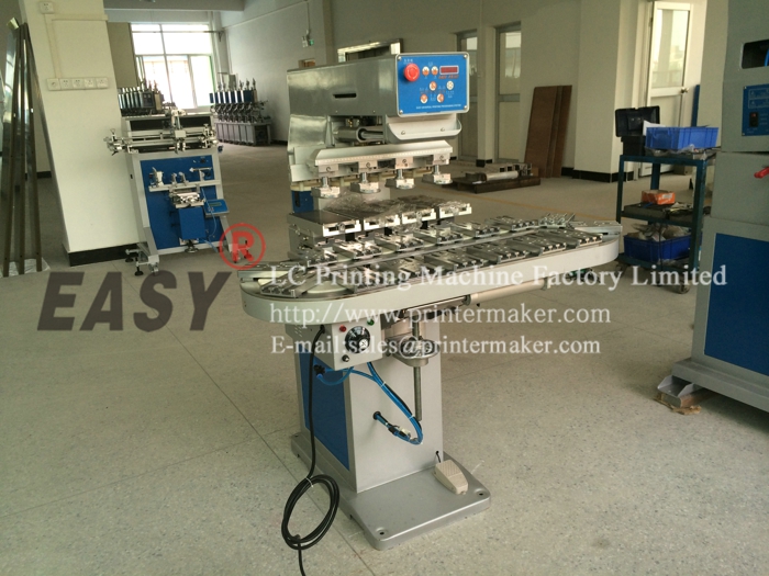 4 Color Pad Printer with Conveyor ensures that is environmental, safe, it is comply with CE Starderand, ease operateing, to consume ink that frugal. Help to reduce any solvents evaporating from the ink too quickly and also helps to keep the ink at a constant temperature.