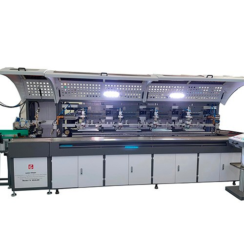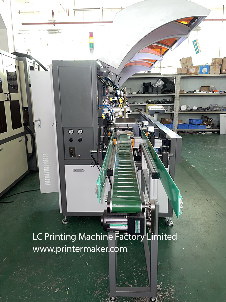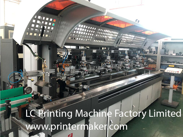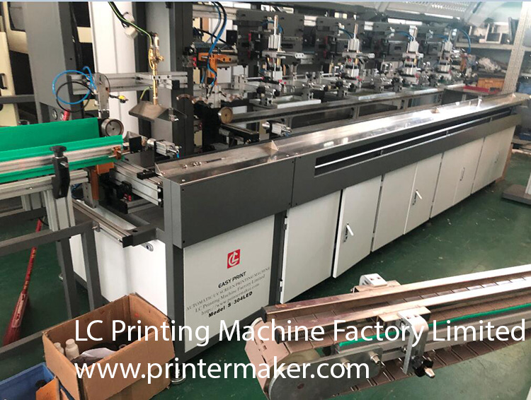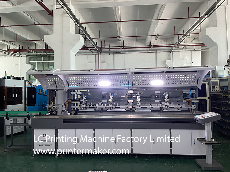 This automatic glass bottles silk screen printing machine is upgraded with LED curing system which is fitting for the glass bottles's printing with both high temparature ink(thermal plastic) as well as LED UV Glass Ink. For using the tradditional thermal plastic materials, it should attached with 30 meters length with at least of 580 degree oven turnel, the quality will be resisted of knife scratching) For LED UV ink printing on the glass bottles, it needs to be cured with 5KW UV oven, and the quality will be resisted of thumb scratching and chemical immersion. For UV dryer.