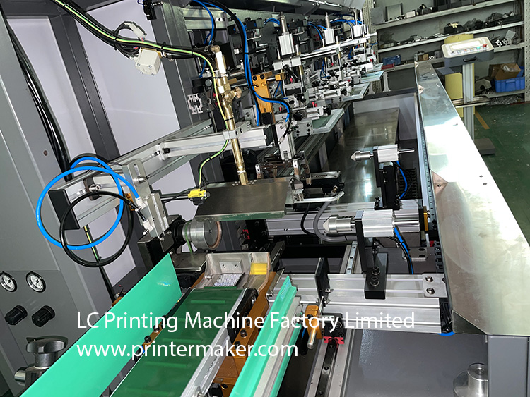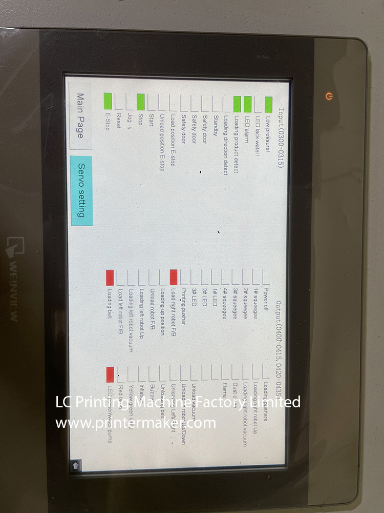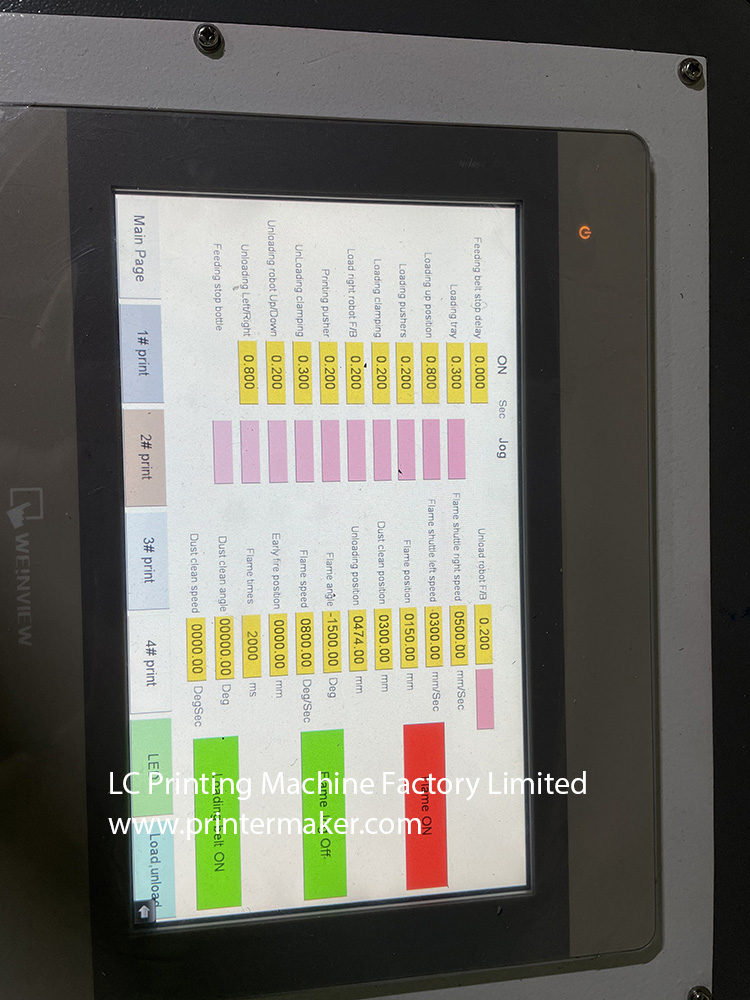 8: Machine is fully servo control, included 8 Sets of Servo System for fire treatment control, tooling jig control, main machine running control, jig rotation control, tooling set holder control and squeegee control, ink blade control etc.