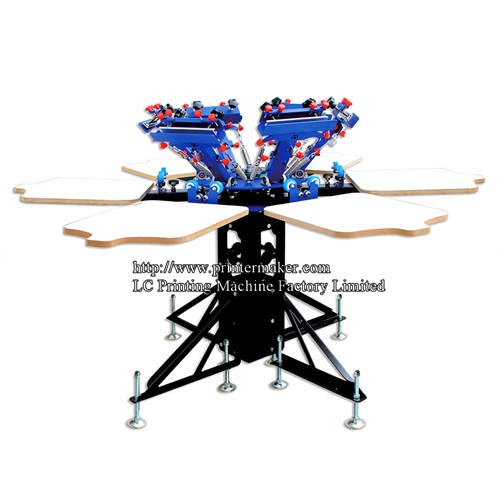 Comparing with the original 6 color 6 station printer, this new type machine has a function of micro-adjust/registration. New design metal stand could adjust the height from 28"-35". If you want to do precise color matching, you can use those small red handles to move the screen frame right or left slightly. It will be a good choice for colorful printing.