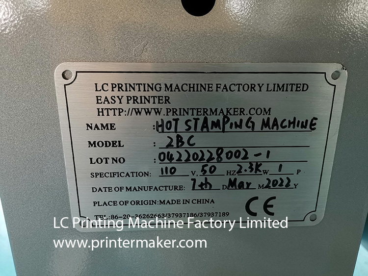 1. Tamaño máximo de estampado en caliente: φ220x100 mm 180x230 mm