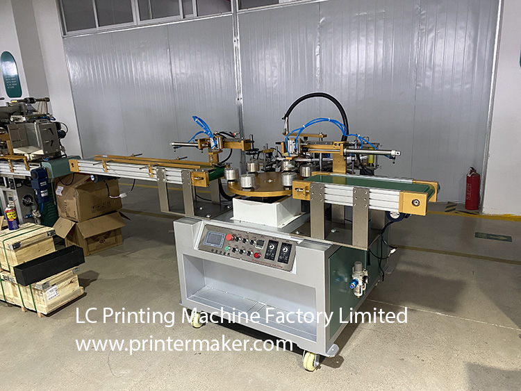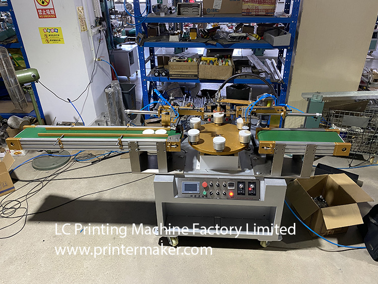 Automatic hot stamping machine on Plastic Caps (included both infeed conveyor and exit conveyor)