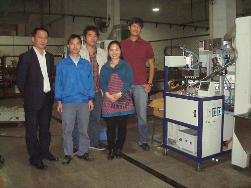 Mr. Carranza G from Bolivia comes for training on their automatic Pad Printing Machine on PC caps model AP-100 and automatic hot stapming machines on modical caps model H-TBD-03.