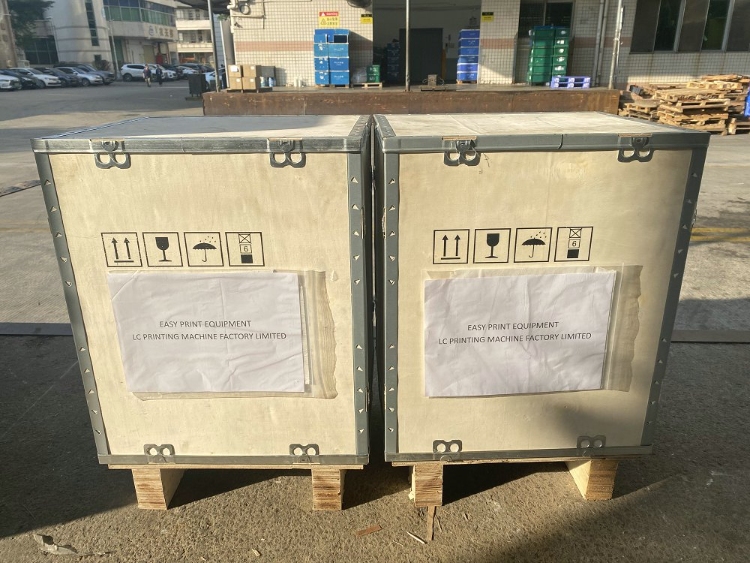 Dated on 1st, Nov. 2023, 2 sets of new repeat order of automatic silkscreen printing machine model S-101-A are being packed and delivery today and sail to USA customer.