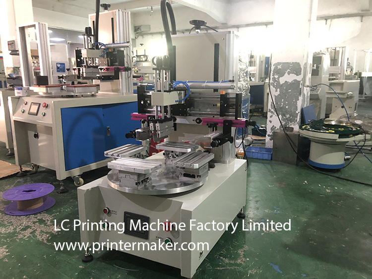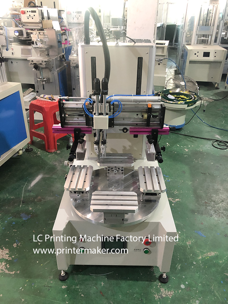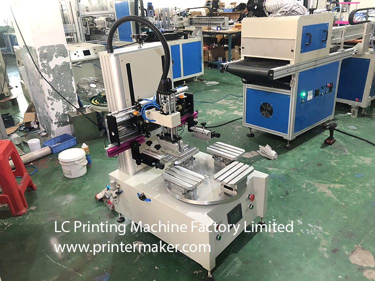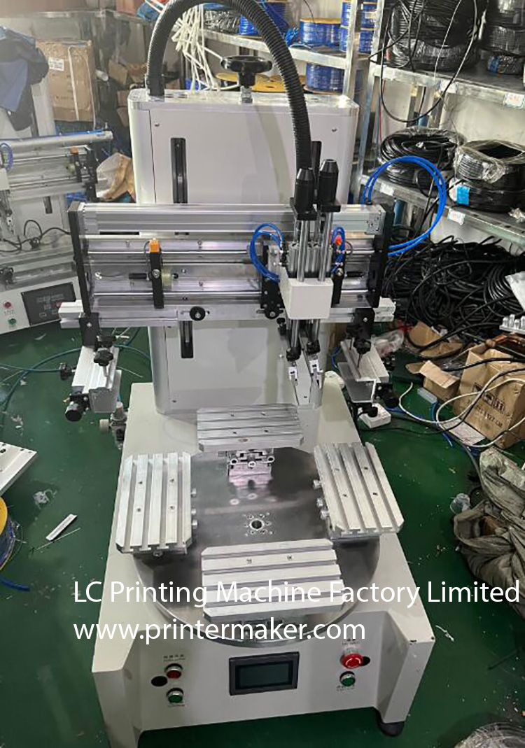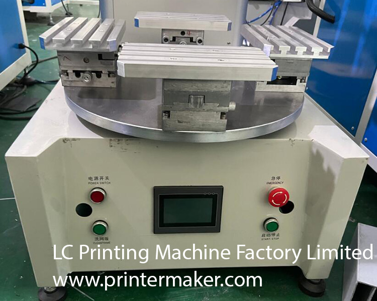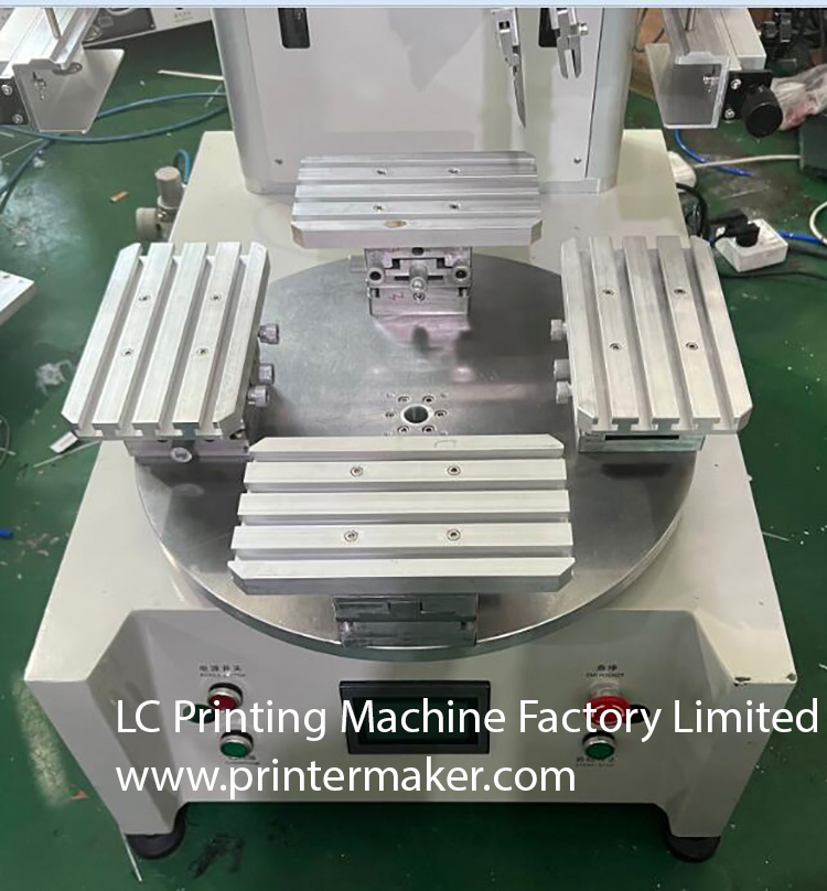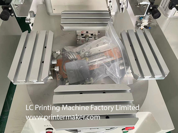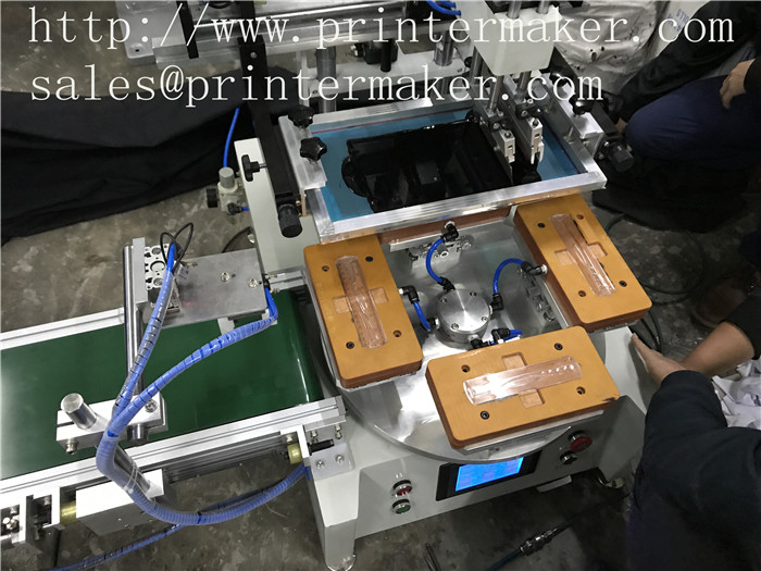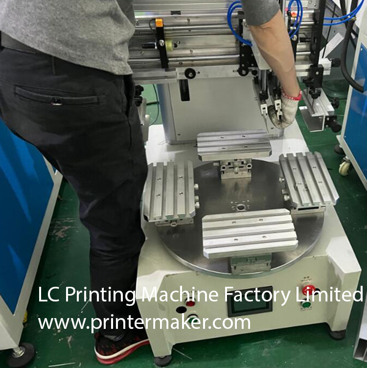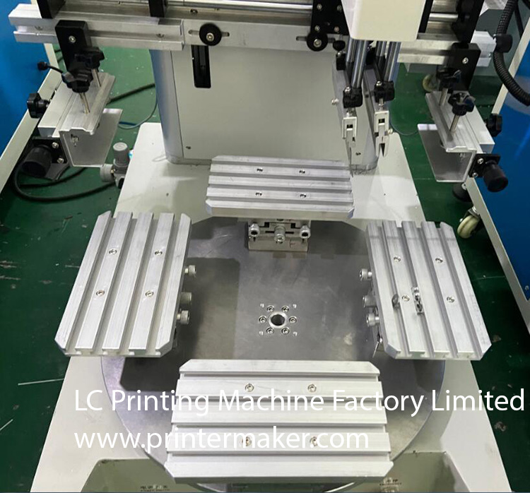 This is tabletop screen printing machine, special design for high speedd, high precison screen printing. It adopted Mechanical from cam separator TAIWAN to make roraty table. It can rotate quickly without shock. You can upload and download products when printing, that can be reduce the stop time of machine. The max printing speed can be up to 1500pcs/hr. It’s very suitable for big quantity screen printing.