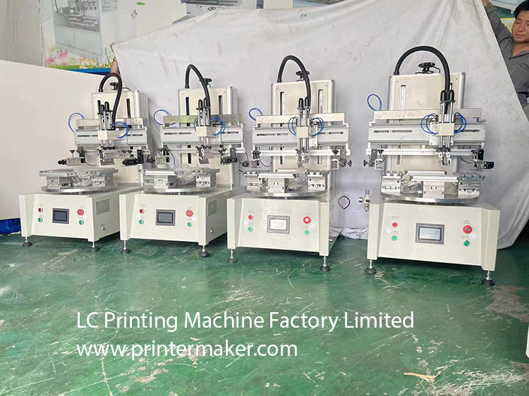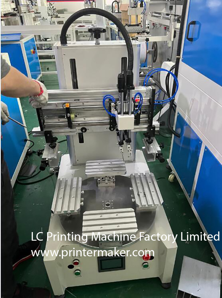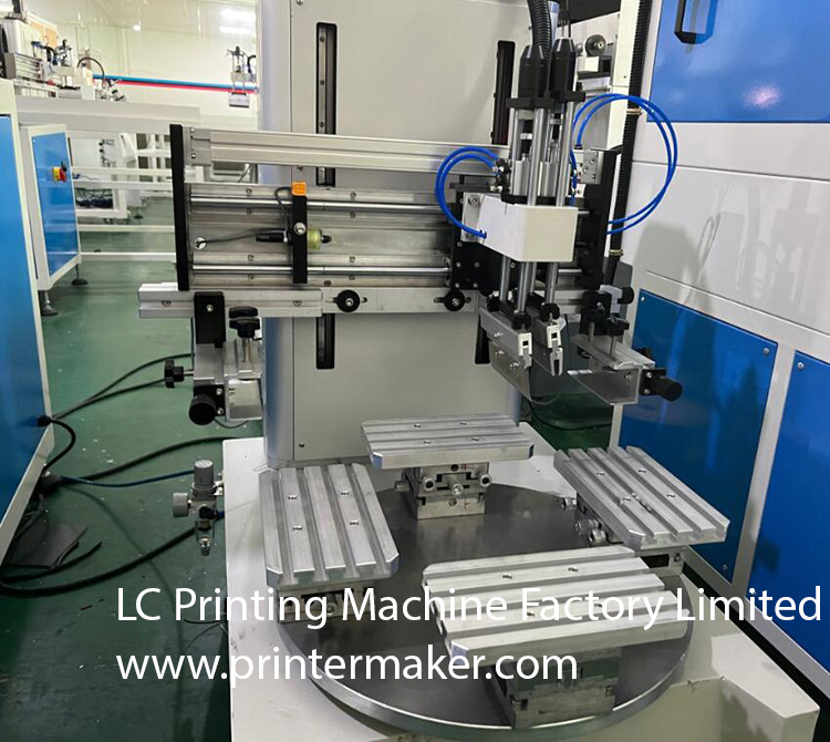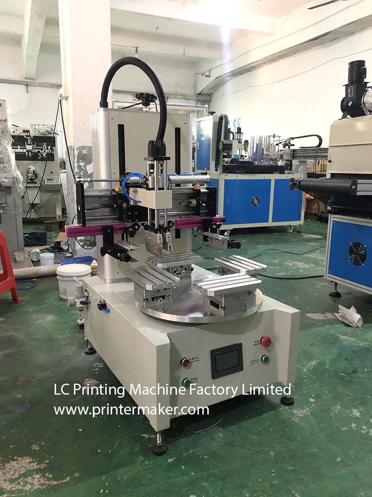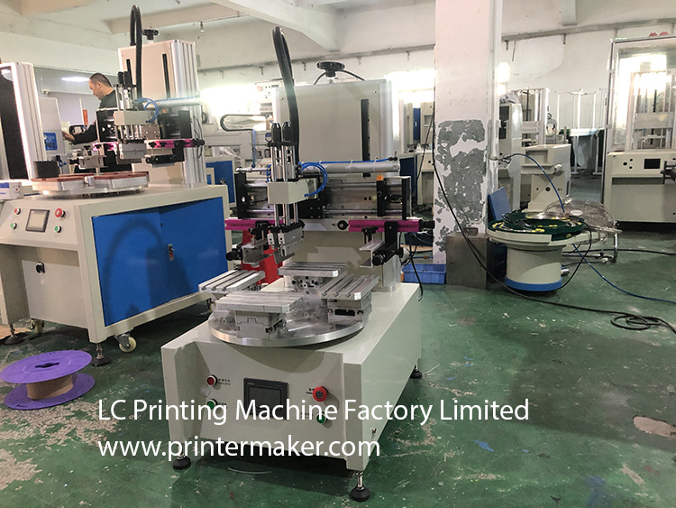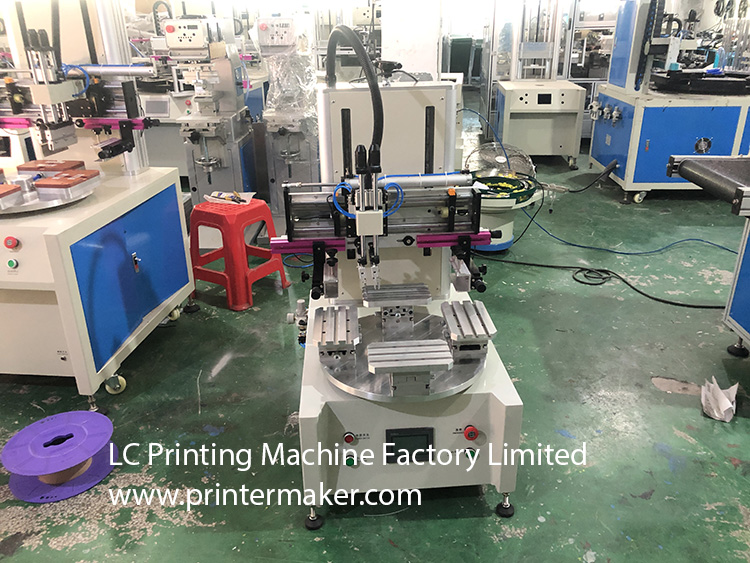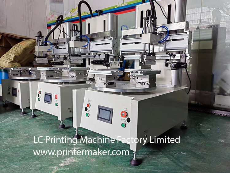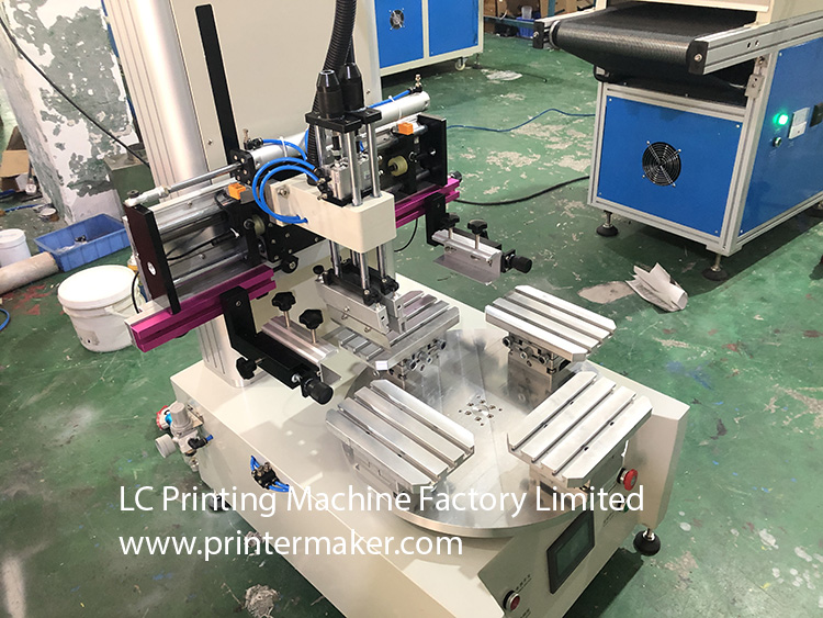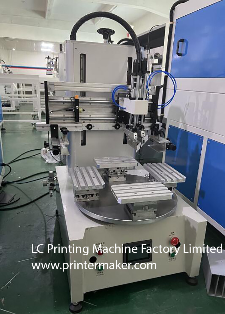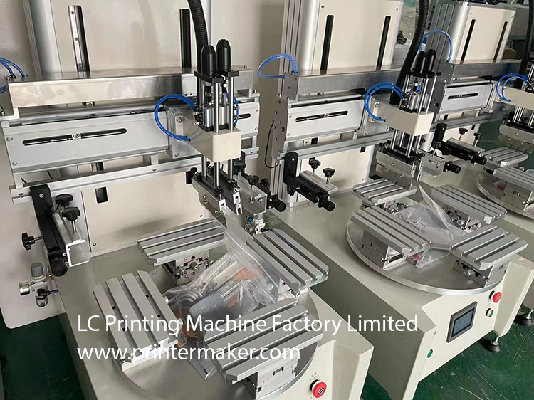 This is tabletop screen printing machine, special design for high speedd, high precison screen printing. It adopted Mechanical from cam separator TAIWAN to make roraty table. It can rotate quickly without shock. You can upload and download products when printing, that can be reduce the stop time of machine. The max printing speed can be up to 1500pcs/hr. It’s very suitable for big quantity screen printing.