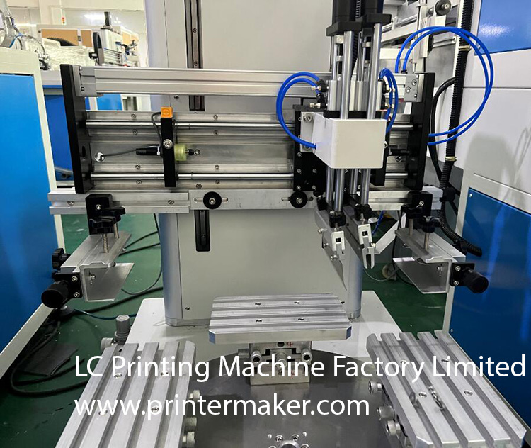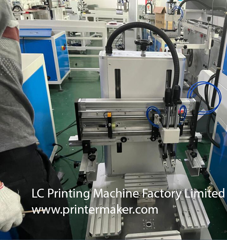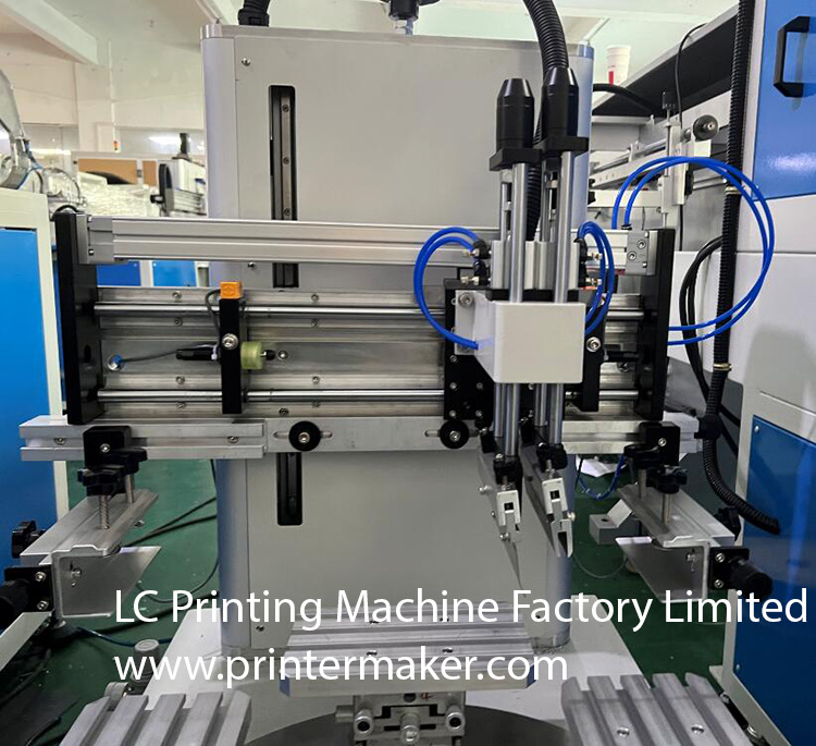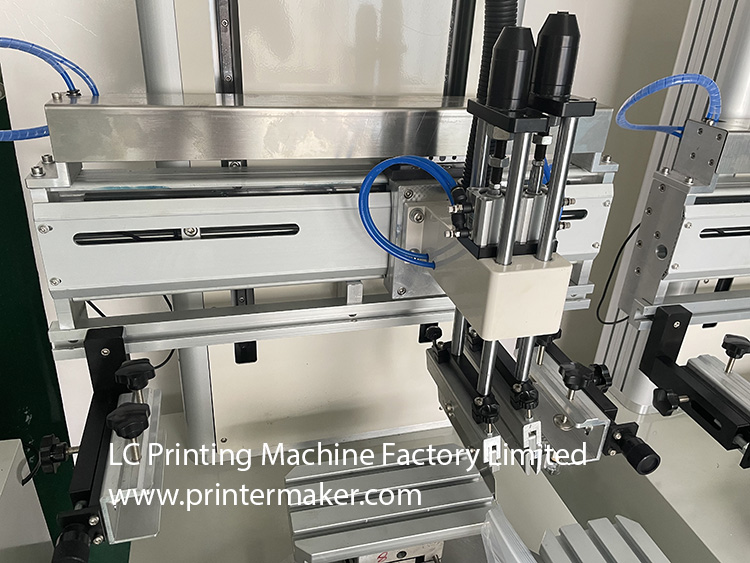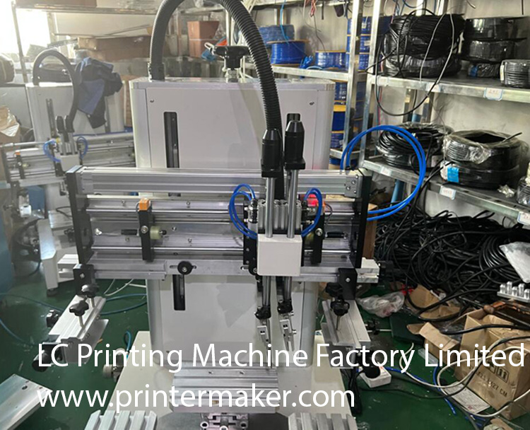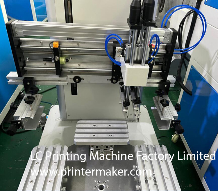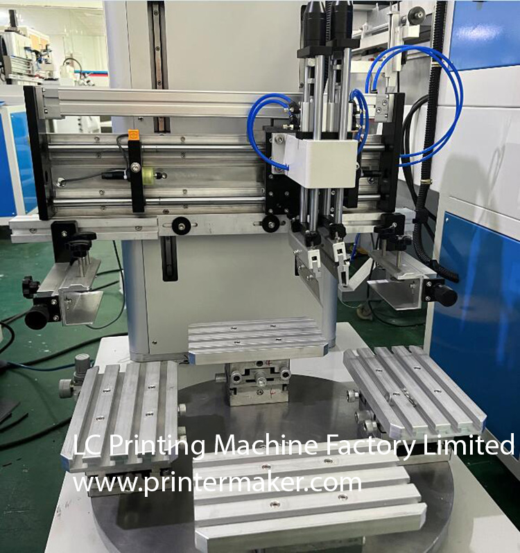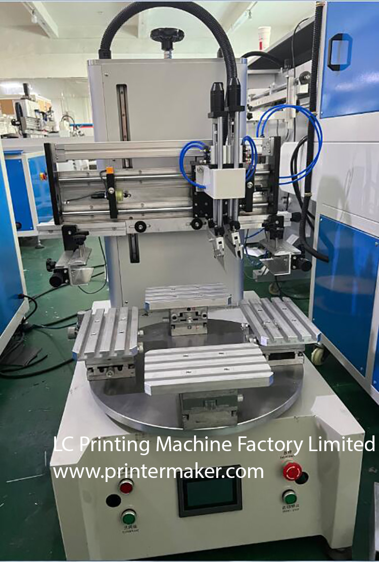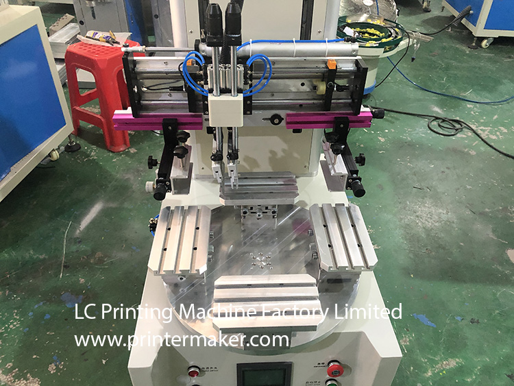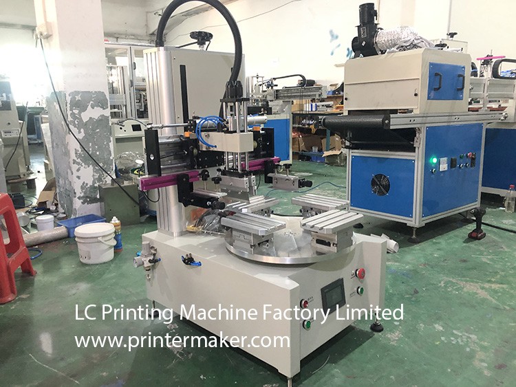 This is tabletop screen printing machine, special design for high speedd, high precison screen printing. It adopted Mechanical from cam separator TAIWAN to make roraty table. It can rotate quickly without shock. You can upload and download products when printing, that can be reduce the stop time of machine. The max printing speed can be up to 1500pcs/hr. It’s very suitable for big quantity screen printing.
