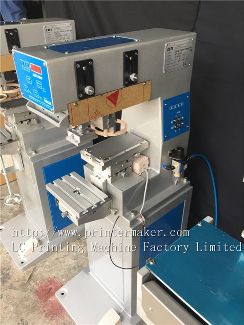 Pad printer with close ink cup has exterior beautiful, small, easy operateing, high quality, environment friendly /acceptable, competitive price, useful for small products, same as toys, pen, stationery, gift, elc products...
