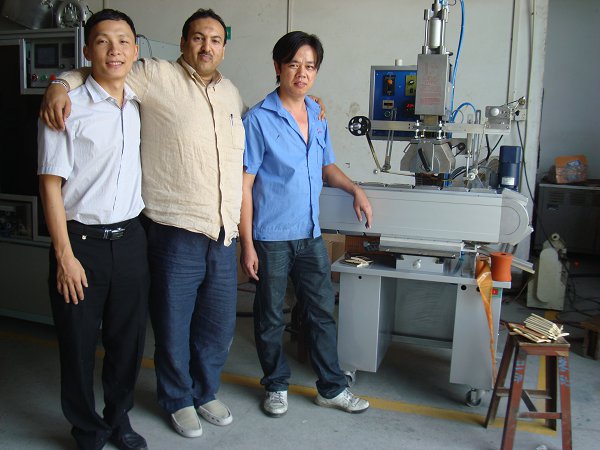Dated on 22nd, Oct. 2011, Mr. Mohamad from Egypt coming for the inspection of the repeat order of the 2 sets of heat transfer machines with Titanic style Conveyor for switch cover. It is no doubt that the two machines obtain his great satisfaction again. We are deeply impress by Mr. Mohamad’s open minded for his honest on his family and ways of being competitive for his products compare those made in China.