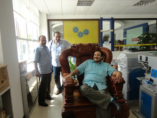 Dated on 19th, Sep.2011, Mr. Mohammad and his three collogues from Egypt visited our factory and participated the training on their Heat Transfer Machines for switch cover. During the training, they were greatly satisfied with the machine's quality, humanize design and easy operation. They were also showing a great interest in other thermal transfer machines and the some consumable materials such as heat transfer film, rubber silicon roller. At the same day, they confirm us the order for other two thermo machines and some heat pressing materials.