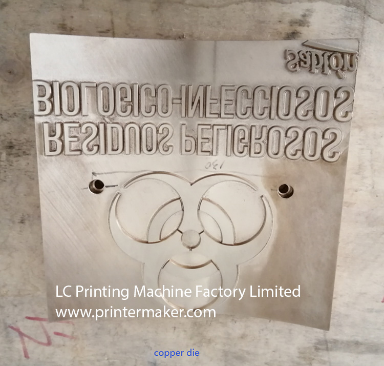 4. Operating the stamping machine make the stamping head press down with copperplate. The sopperplate will be adhered on the stamping plate.