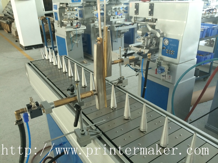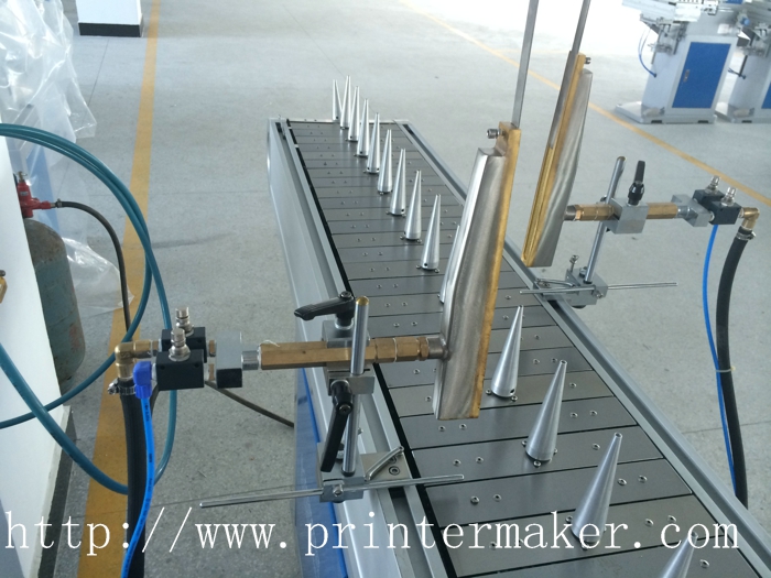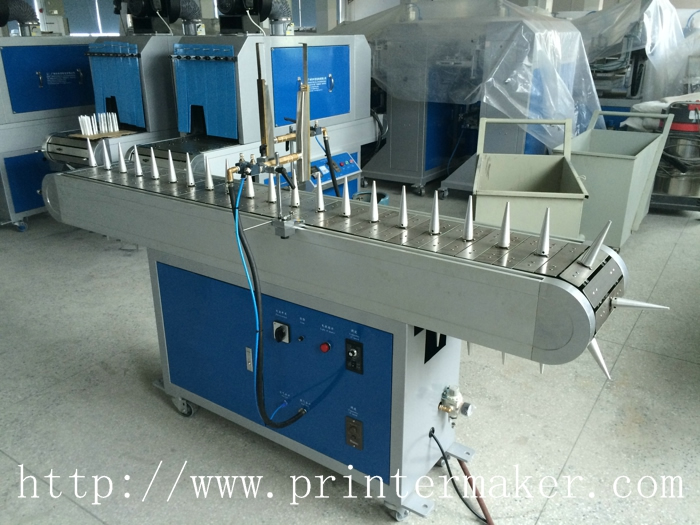 This fire treatment machine is mainly used for flame treatment of various bottles and cylinder which is made of PE and PP and other plastic material. Through the fire treatment processed by this machine, the ink can be attached to the printed plastic products more firmly.