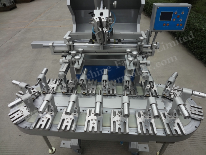This is our new product: Flat And Round Conveyor Belt Screen Printing Machine with 16 Stations. It is designed for enhancing the efficiency of printing capacity on those small round diameter and flat objects such as bottle caps' sidewall and cap's top with single color printing, it is also fitting for those glass cups, tubes, small diameter bottles,covers, stainless steel cups printing etc.