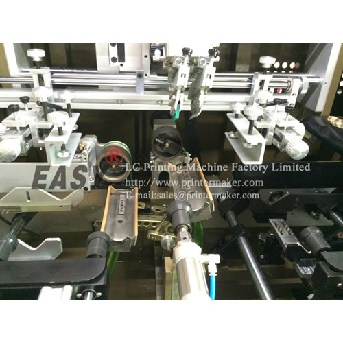 This multi-purpose fully-automatic polychromatic screen printer is applicable to print patterns on the surface of cylinders and oval cylindrical bottles. The colors can be either assorted or fixed by connecting a number of machines or separating machines to print so as to meet different customers’ needs to the most extent. The updated transmission design features being more stable, easier to switch to bottles of different shapes, and more flexible. Besides, its favorable price ratio will drive the product to be used by more and more small and medium-sized enterprises.