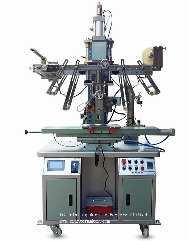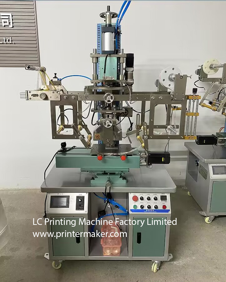 This machine is fitting on both round and flat cylindrical shape botles, beer cups, plastic jars, cups, plastic boxes heat transfer printing.