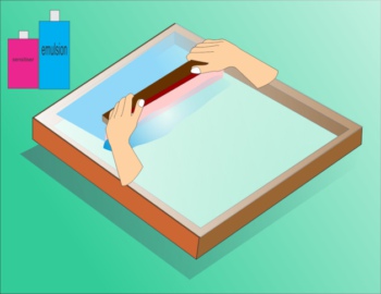 3.Cover each side of your screen with a thin layer of emulsion. You can use a squeegee to spread the emulsion evenly on both sides.