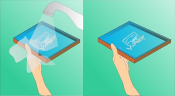 5.Put the transparency stencil on the screen and apply pressure with a piece of clear glass to make sure the stencil stays flush with the screen.