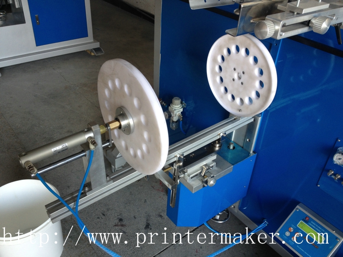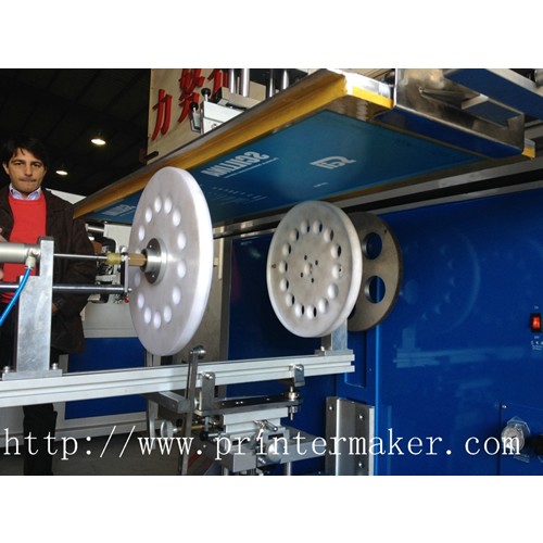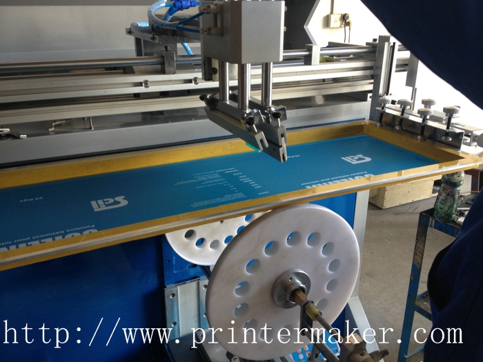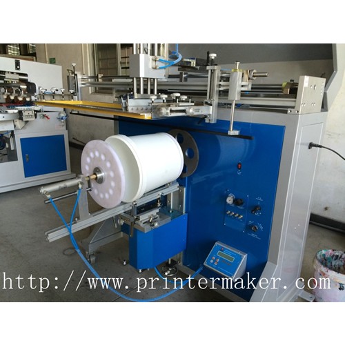 1100 Screen Printing Machine, which is fit for printing on the big diameter round products such as paint and water buckets etc.