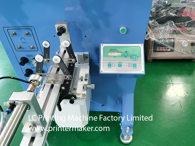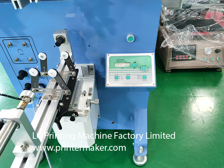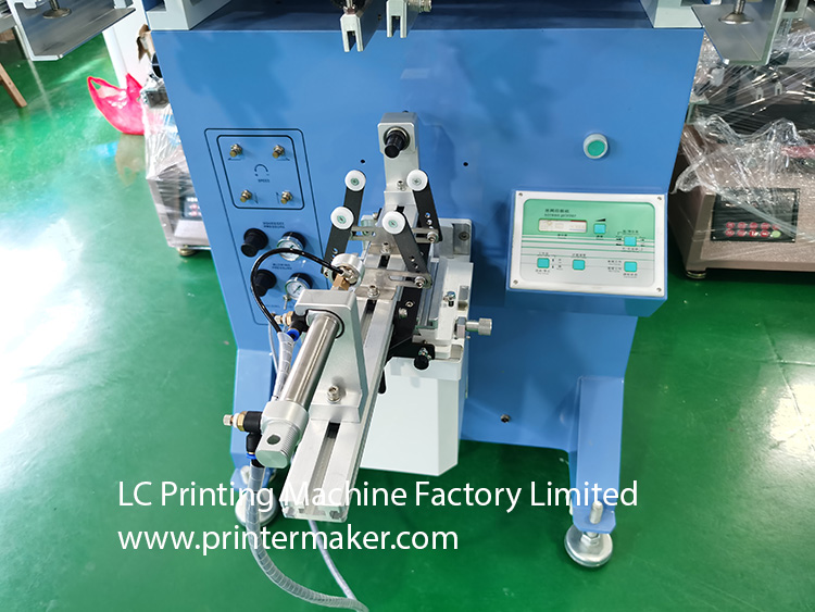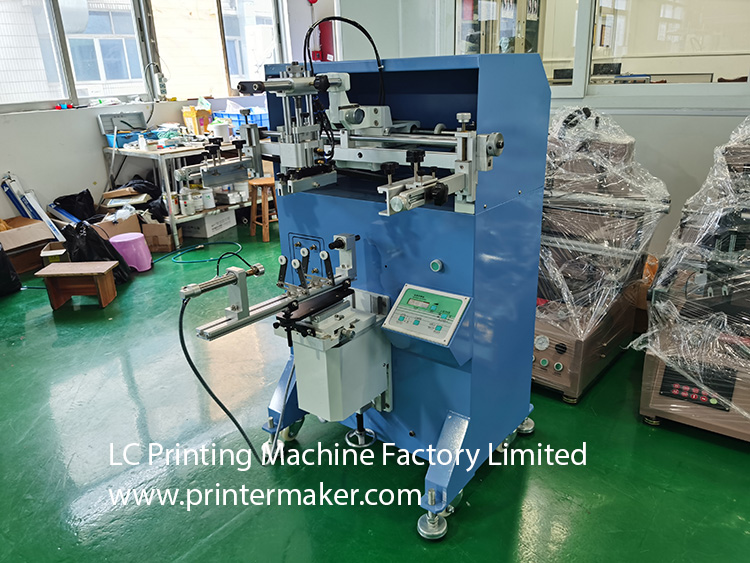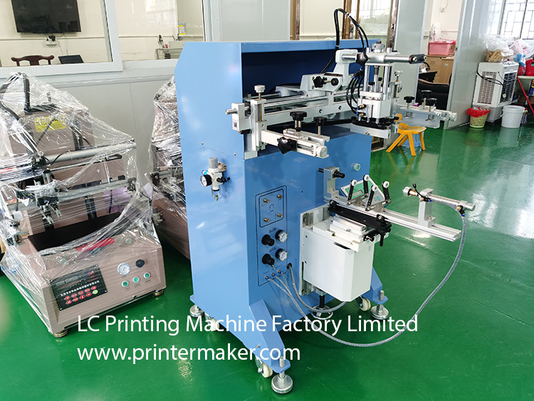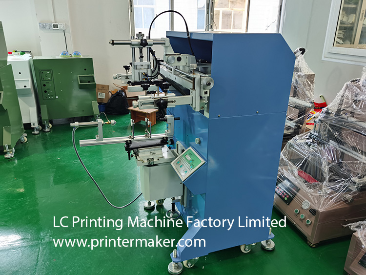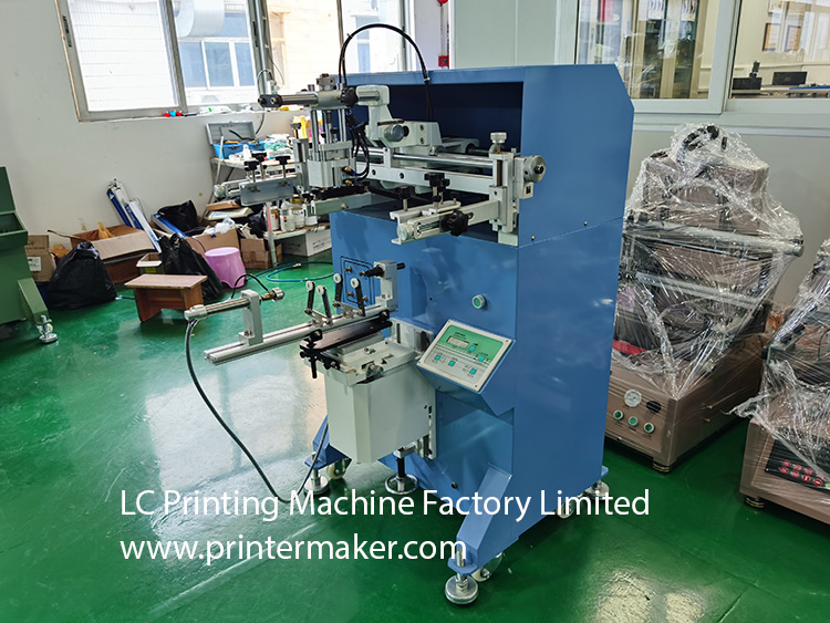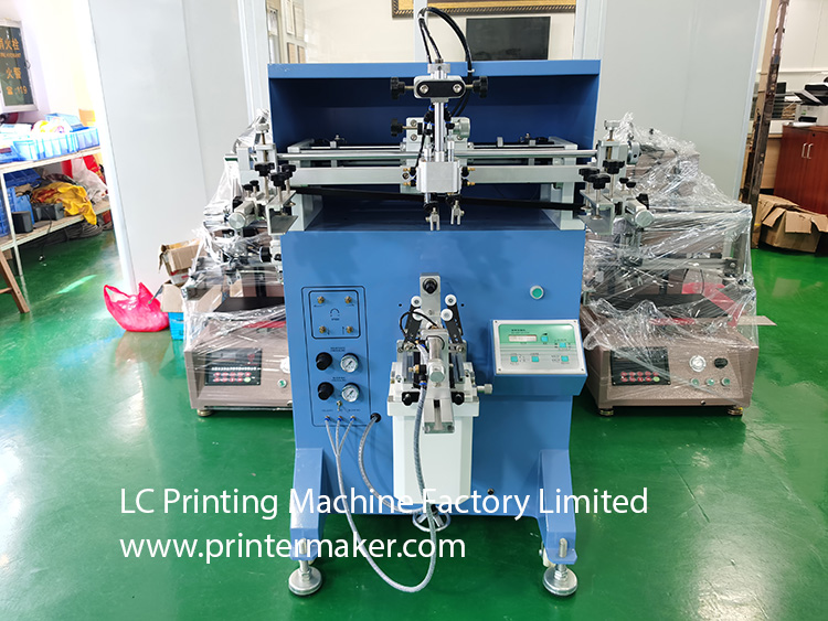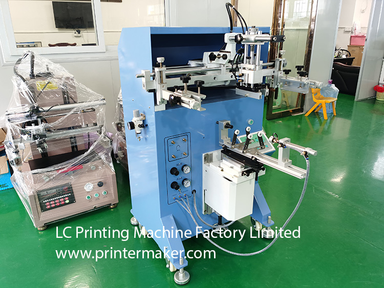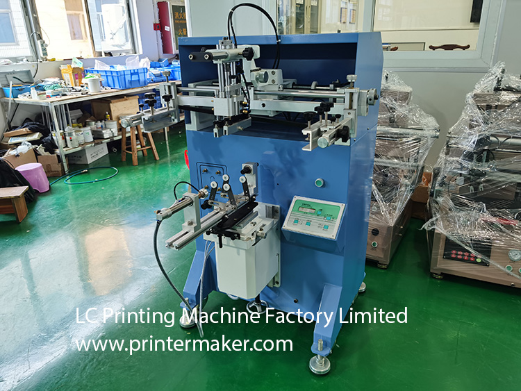 Model 600 Screen Printing Machine, which is fit for printing on the more bigger diameter bottles with bigger printing stroke at max. 580mm, etc.
