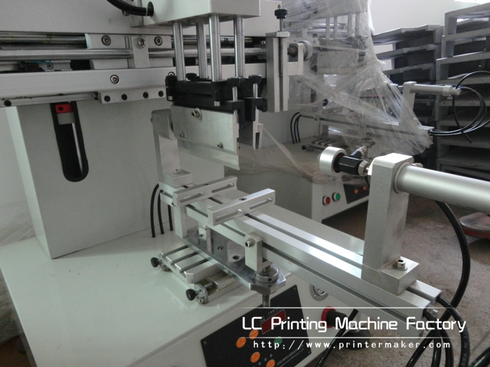 The Mini cylindrical screen printing machine is adopted imported (Taiwan) pneumatic parts with quick speed, stable quanlity, lower noise, precise over-printing, 350mm stroke. It is suitable for printing the surface of round products with 100mm diameter, such as cosmetic products, chemical container, food packing cans and other related cylindrical products. As the volume is small, the application field is wide, the price is favourable, the machine is the most popular machine in the market. It is the best favourable machine.