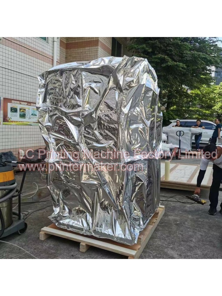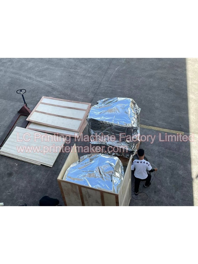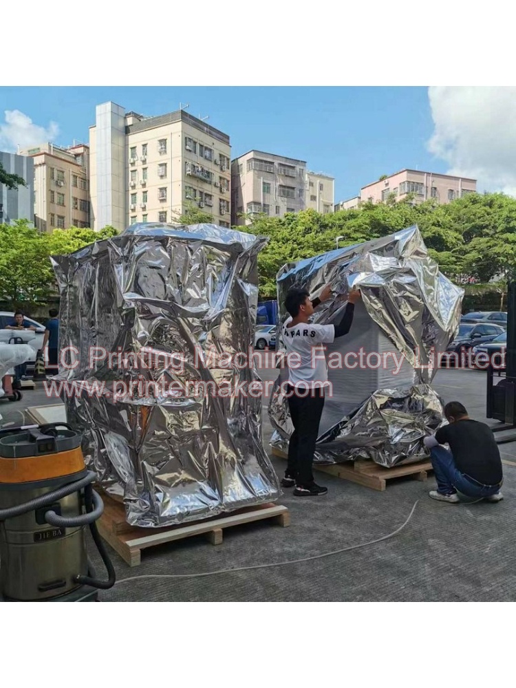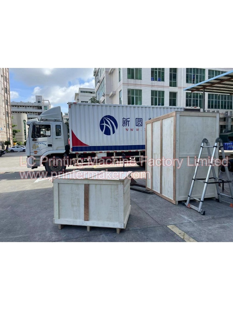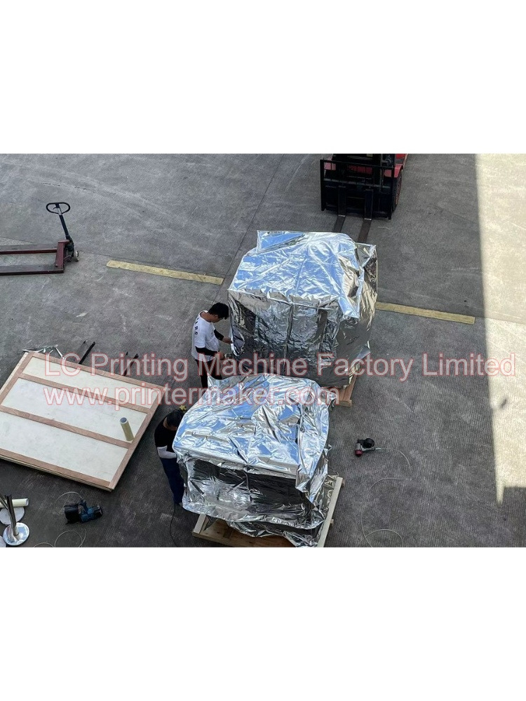 Dated on 21th,June,2023, 2 sets of fully automatic hot stamping machine model H-TBD-03 are being well packed and delivery to USA long tern cooperation customer. This two sets of automatic hot stamping machine was adding the protection safety frames for up to USA strict operation standard.