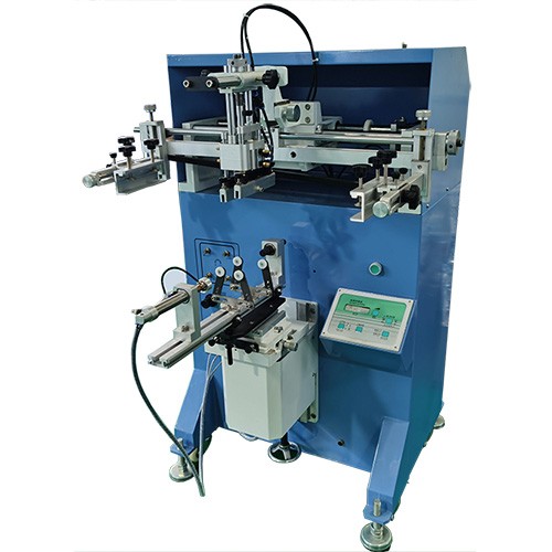 Mini impresora de serigrafía adecuada para la impresión precisa de sustratos de forma cilíndrica, cónica y ovalada con superficies curvas lisas, fabricados en diversos materiales