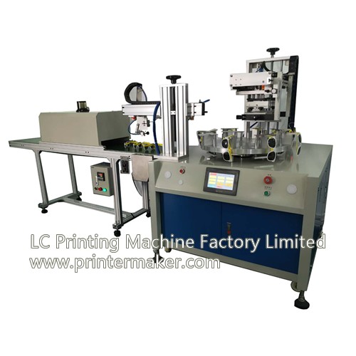 Se trata de una impresora de serigrafía semi-automática rotativa de 8 estaciones, con sistema de descarga automática y túnel de secado, especial para la impresión de gafas de sol. Es adecuada para todo tipo de productos planos pequeños que requieren alta velocidad y buena calidad. El túnel de calentamiento IR puede sustituirse por un sistema de curado UV según las necesidades del cliente. El robot de descarga automática junto con el sistema de secado permiten reducir considerablemente el coste de mano de obra y aumentar la capacidad productiva.