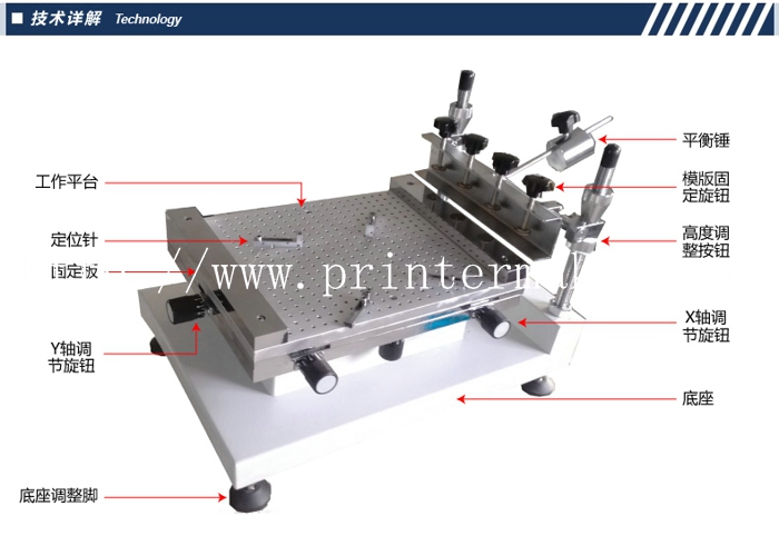 Adiust button at lengthwise:adjust the stencil frame in length direction