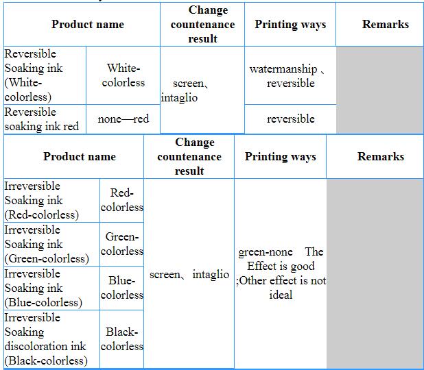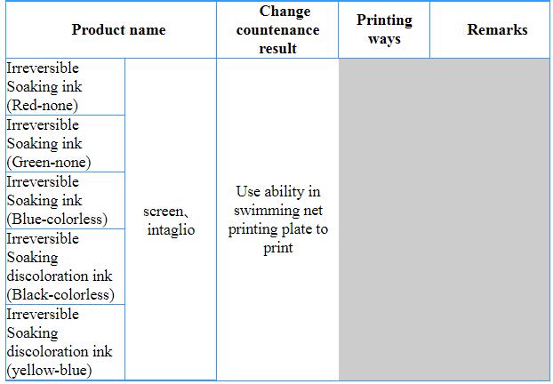 Soaking discoloration ink is divided into reversible discoloration ink, irreversible discoloration ink and irreversible pervasion ink.
