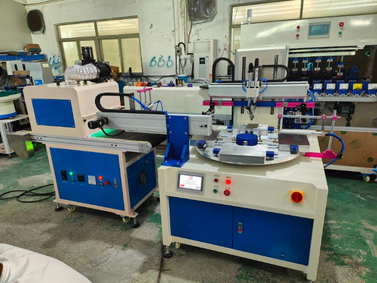 This machine is a high speed and precise screen printer,the printing precision can be up to <0.05mm,using Taiwan mechanical cam divider copmose high speed rotarytable,which have no shack when printing,installing auto-baiting and drying system to improve the printing quality.When printing,you can bait and feed products,reducing the stop time of the machine.The speed is quickly,can be up to 3500PCS/Hr,It is first choice for you to do large quantity printing.