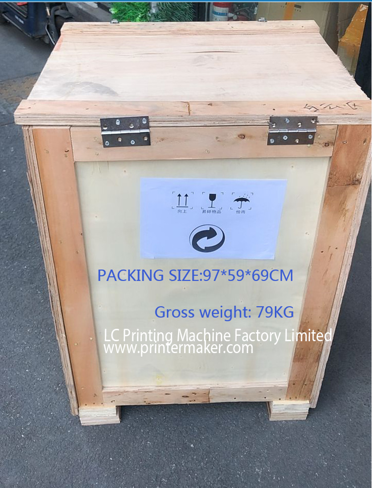 12. Tamaño de embalaje: 950 × 670 × 940 mm (caja de madera, con impresora de codificación)