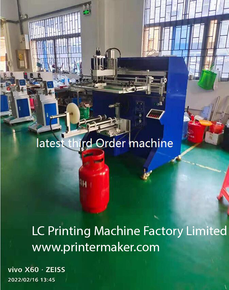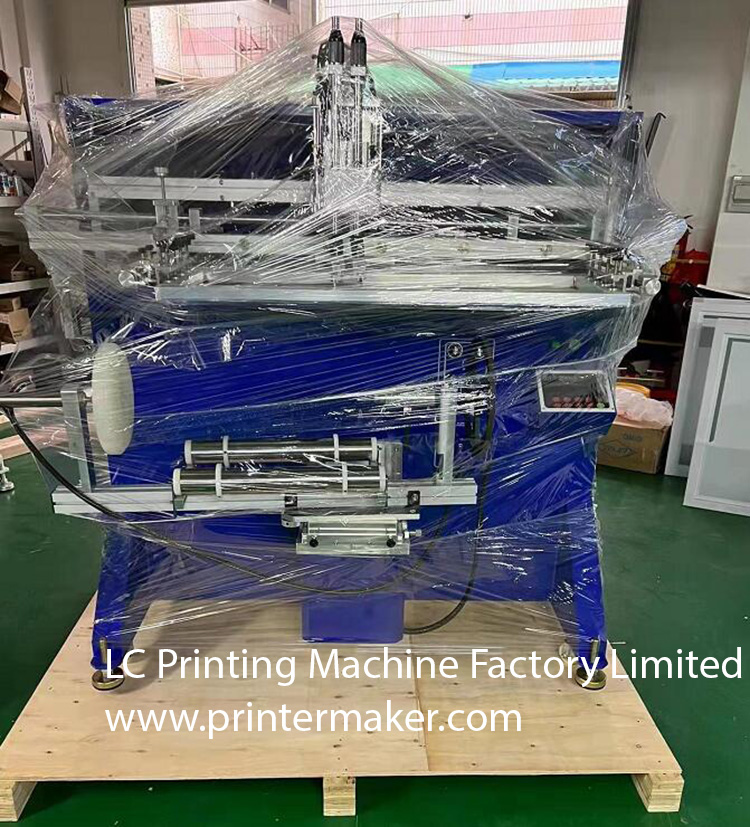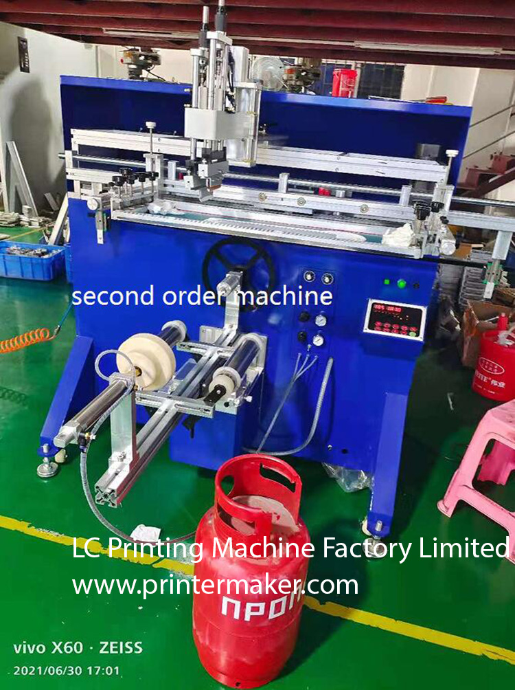 1200 Screen Printing Machine, which is attached with strengthen working table for holding the heavy bucket. It is fitting for printing on the big diameter round products such as metal drum, gas tank bottles, LPG gas cylinder, 5 gallon plastic pails etc.