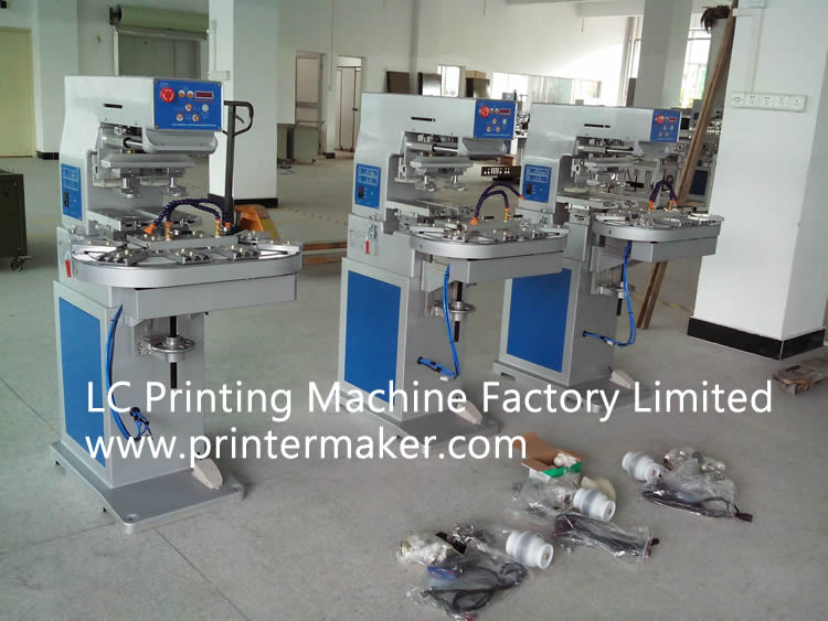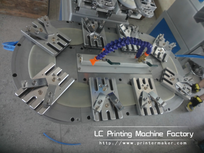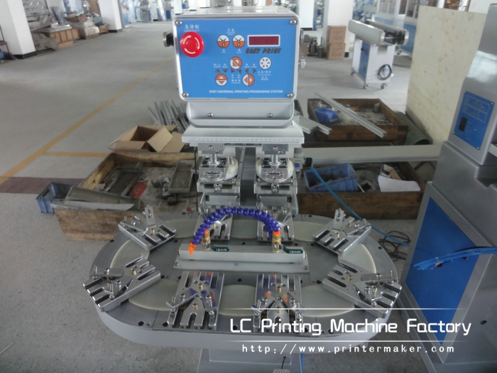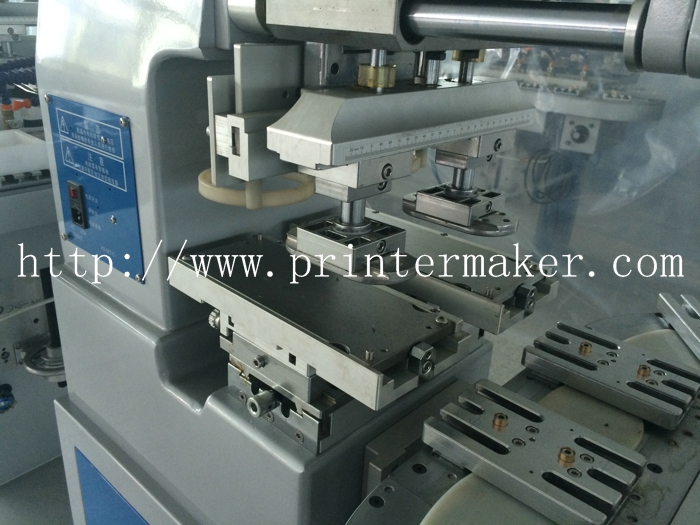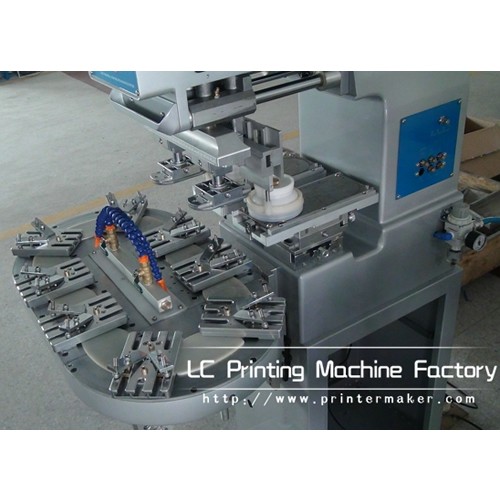 Two Color Ink Cup Pad Printing Machine with Conveyor has 8 PCS printing position. It can print 8 PCS products and two colors at one cycle
