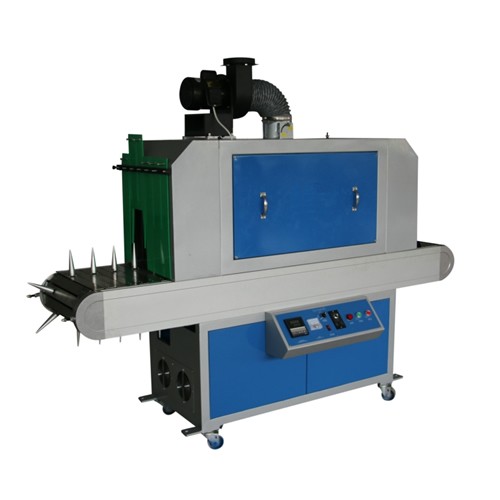 La máquina está diseñada para el secado y curado de frascos de plástico o vidrio redondos y ovalados. Se usa ampliamente en el curado final de impresión de frascos cosméticos y productos domésticos. El soporte es extraíble, por lo que también es válida para el curado de productos planos.
