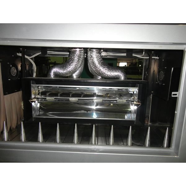 3. Estructura cerrada con transportador. Se pueden usar tubos de media luz (3 kW) o luz completa (6 kW), con distancia regulable.