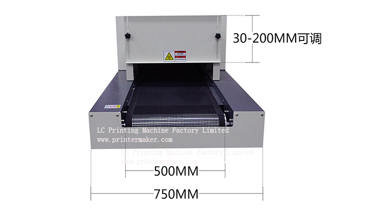 Mesh belt speed adjustment, lamp height adjustable (manual)