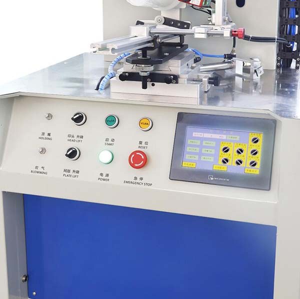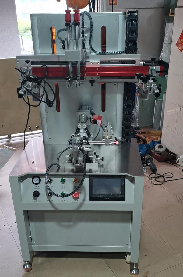 This is our new upgraded EC-400XN semi automatic cylinderical screen printing machine with automatic registration .