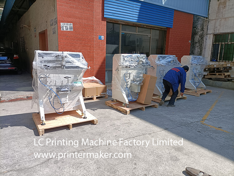Dated on 4th,Mar.2022, the long-run cooperation customer Mr. Chater from U.K. placed the repeating order of 4 sets of same China cylinder screen printing machine model 600 for the glass perfume bottles and plastic bottles screen printing. He also has the very advanced spraying ling for the glass bottle’s spraying locally. We have been cooperating with each other since 2013. Up to now, customer’s factory has been continual establishing and also on the process of placing order for the CNC screen printing machines with CCD registration which is featured by fitting all those square, oval and irregular shape bottles in 360 angle degree screen printing in one time running through. Now there are more and more Europe customer interested in the CNC screen printing machines. The LED curing system is also the developing trend.