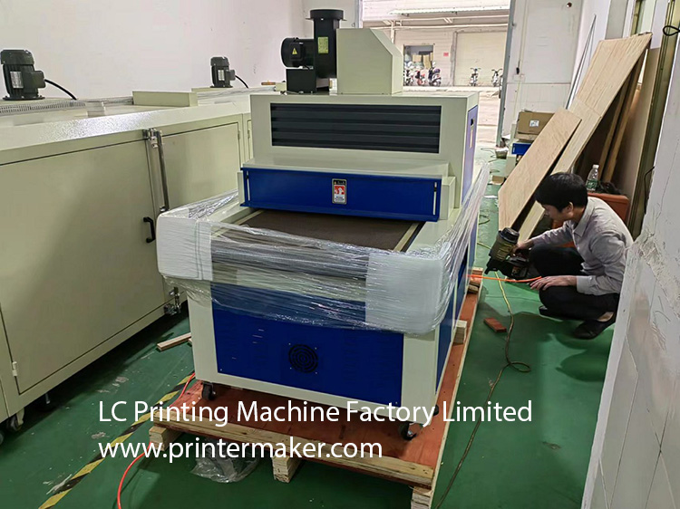 Dated 12th,Jan.2023, a set of flat UV curing machine with the width at 700mm width * 2000meters length was being packed and ready to deliver to forwarder’s warehouse for catching the last shipment before Chinese Lunar year holiday to USA customer. This is one of our biggest customer who was bought the fully automatic UV silkscreen hot stamping machine model SGL-103 for the glass jars and bottles printing.