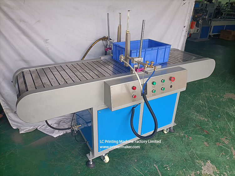 Customs is buying complete solution included the two sets of flat bed screen printer, UV curing machine model M-500UVF, Flame treatment machine model F2B, Silkscreen frame exposure machines model M-800SB for silkscreen frame making, manual frame stretching machines etc.