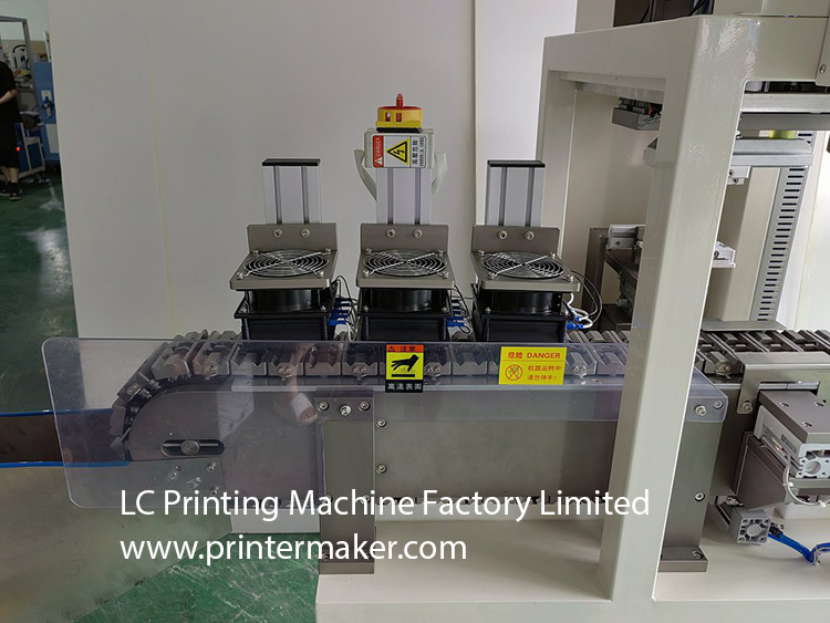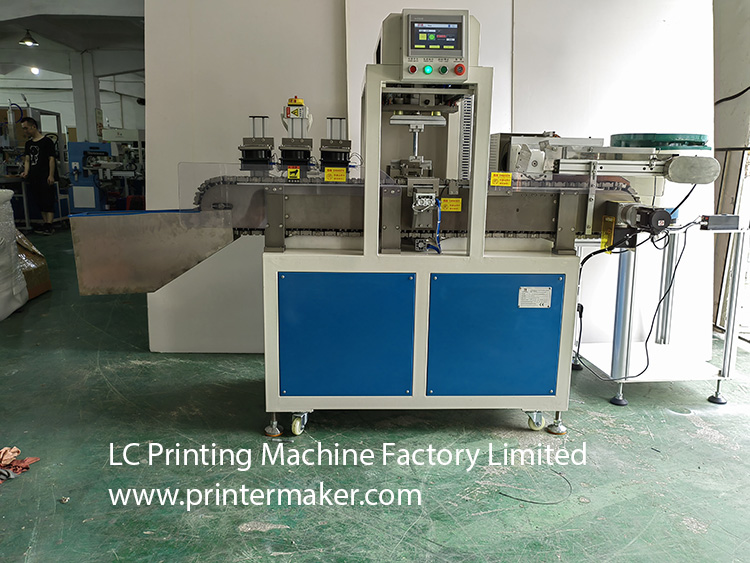 This fully automatic pad printer is specially designed for special pen rods’s printing with fully automatic vibrating bowl. The tank conveyor is perfect designed for high speed working capacity at 4pcs for each circle printing time.