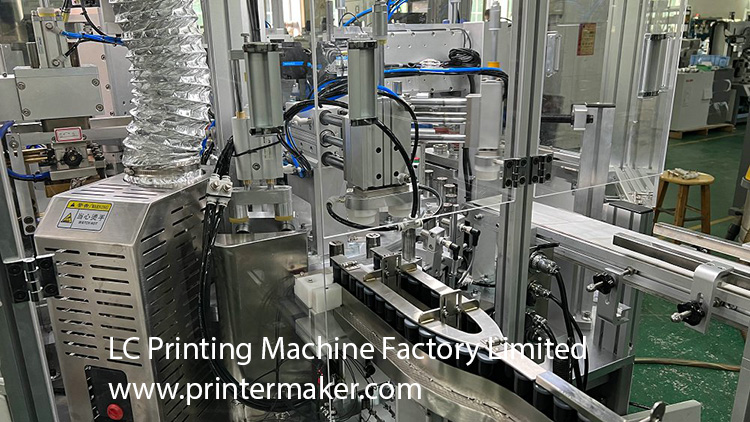 This machine is customizing machine on aluminum caps printing which is included all those function such as pad printing,