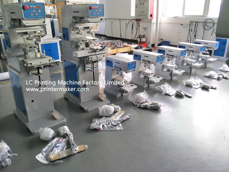 The customers has been ordering set of silkscreen printing machine model 400AB, Many ink cup pad printing machines ranges from table top ink cup pad printer, single color ink cup pad printer model P1-250T, Two colors ink cup pad printing machine model P-250T, 4 Colors ink cup pad printing machine model S4-250T etc.